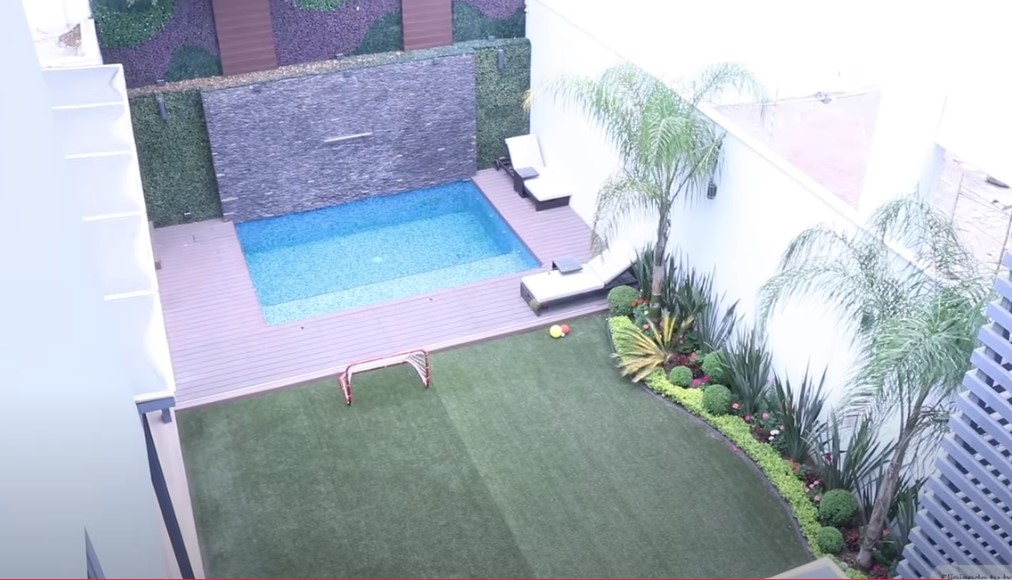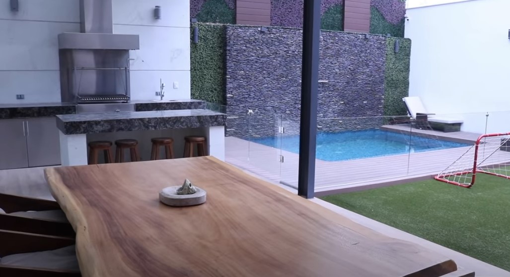 En el jardín también tienen una alberca, un asador y un comedor.